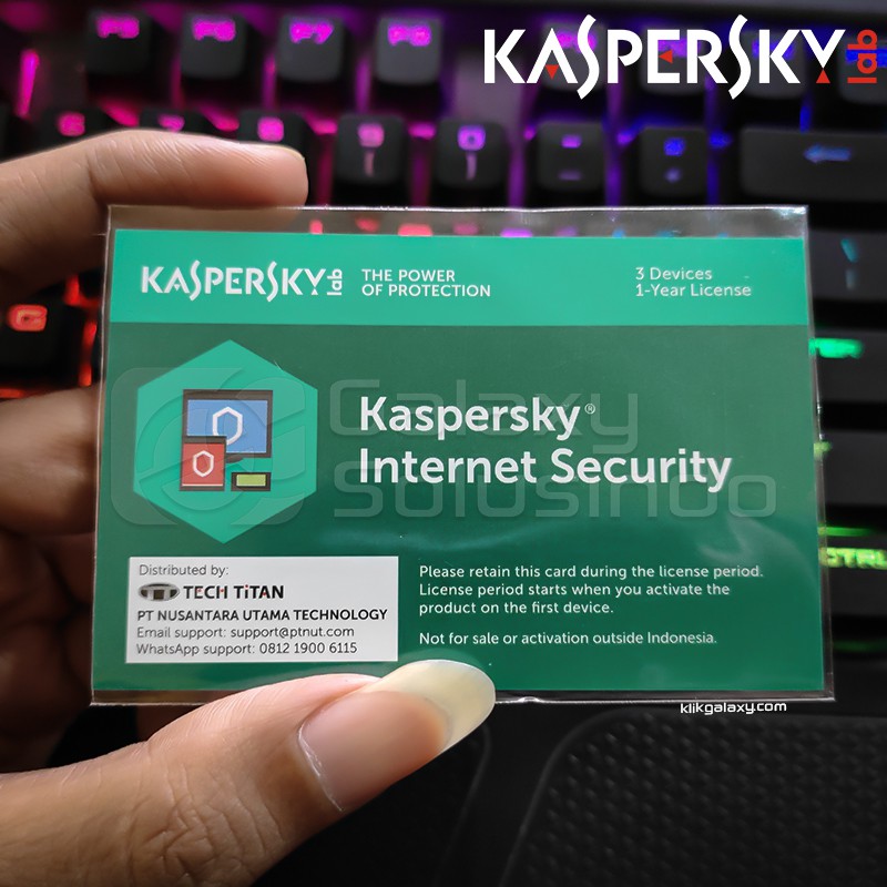 Lisensi code antivirus KasperskyRp340000. ORIGINAL KASPERSKY INTERNET SECURITY 2019 3 USERS -Untuk 3 PCLAPTOP GRATIS KIS for Android 1 device 365hari Original - Masa Aktif 365 hari Aktivasi online langsung ke server kaspersky. Pembelian di Antivirus Indonesia dipastikan aman resmi dan pengiriman lisensi secara langsung atau maksimal 48 jam terhitung dari pembayaran dilakukan.