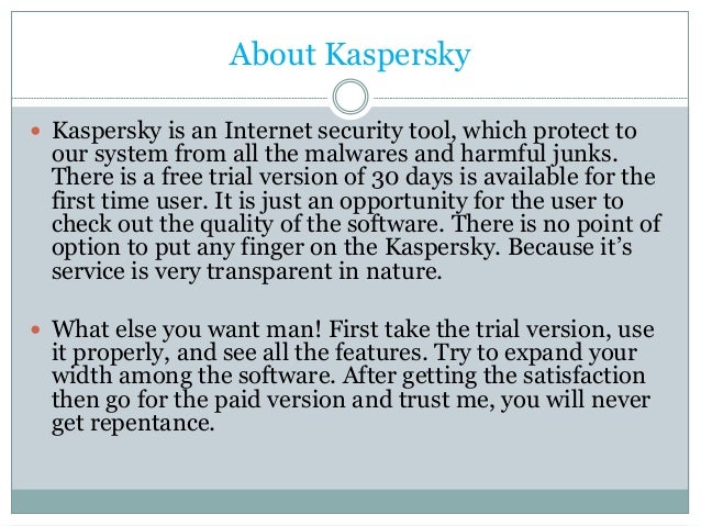 Kaspersky antivirus user guide. Business Protection Plus - Administrators Guide. Download Kaspersky virus protection software for free for 30 days. The MX-Virtualization engine analyzes malware in real-time observing its behavior before it.