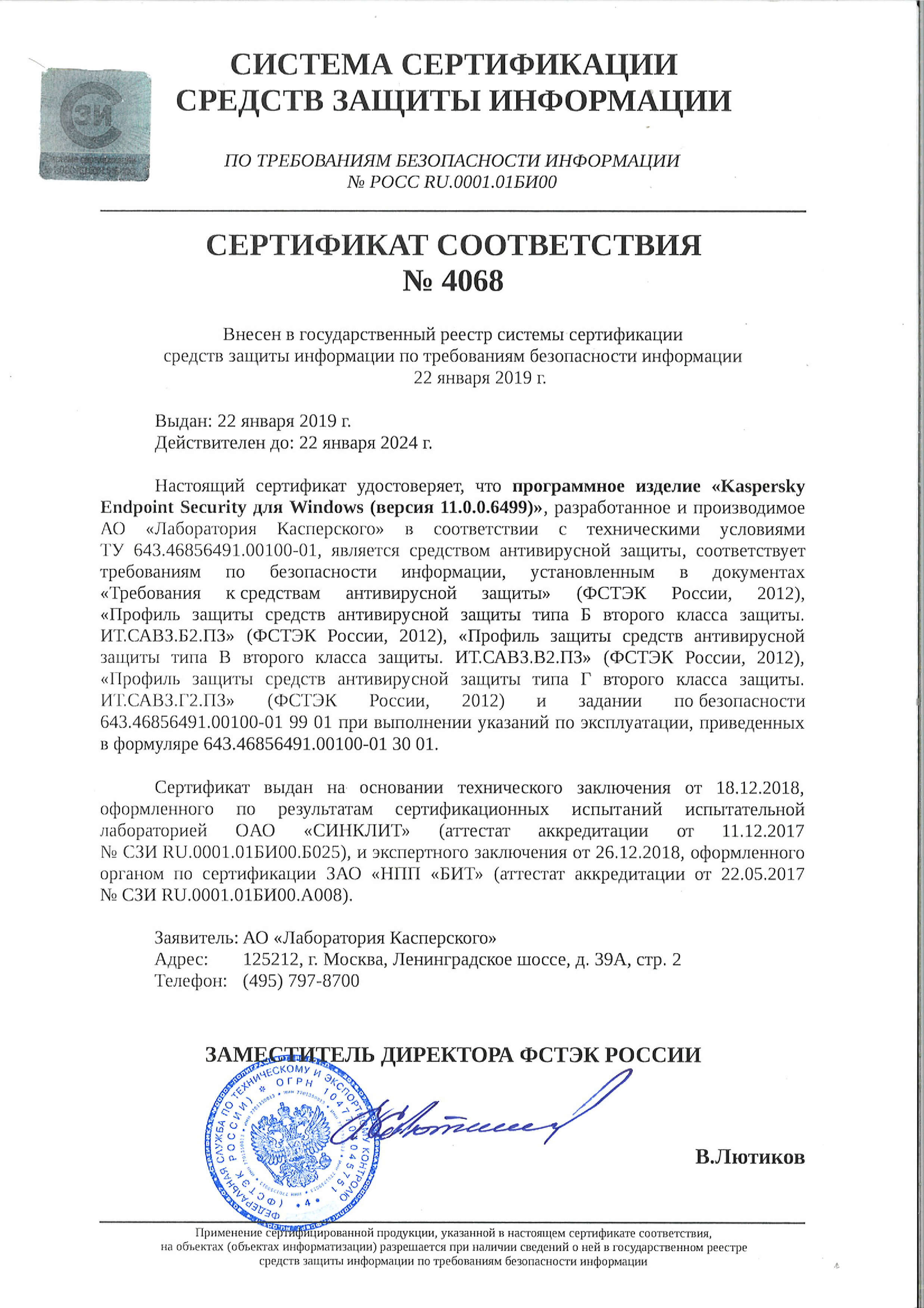 Kaspersky Endpoint Security S Sertifikatom Fstek Kak Kupit