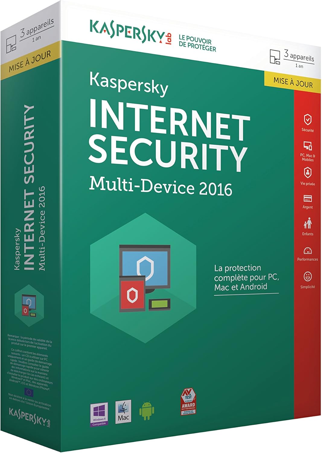 Kaspersky Internet Security 2016 3 Postes 1 An Mise A Jour Amazon Fr Logiciels
