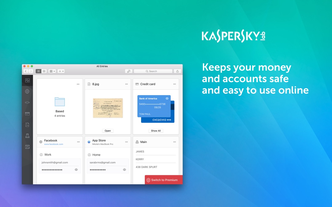 You can go even further and install Kaspersky Total Security Multi-Device. Always password-protect your accounts. Its consumer solution Kaspersky Total Security Multi-Device includes a special Kaspersky Password Manager module that enables users to securely store all their passwords and identity forms.