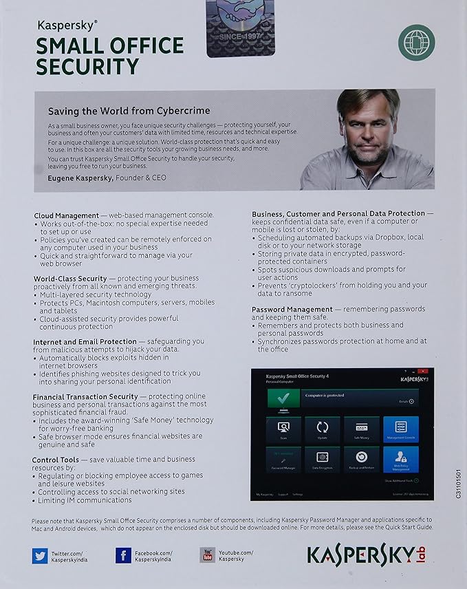 Kaspersky small office security 15 user. Your privacy children money and more. Download updates and free trials of Kaspersky Small Business Security products to protect your company with our award-winning security software. Kaspersky Total Security 2018- 1 User 3 Years CD Chance to win Rs1000 Amazon Gift voucher Kaspersky.